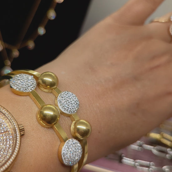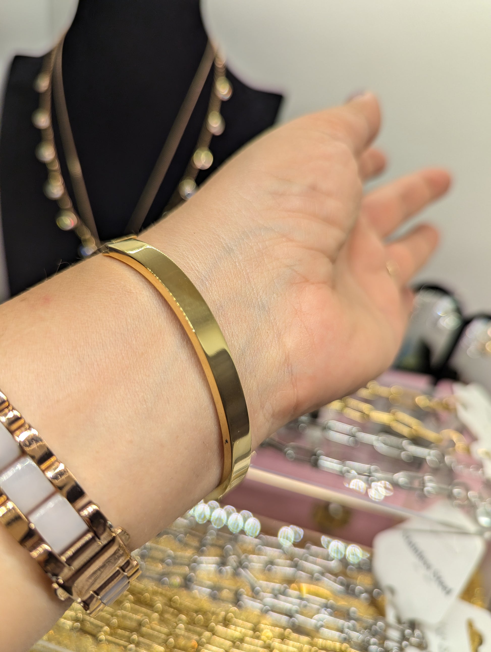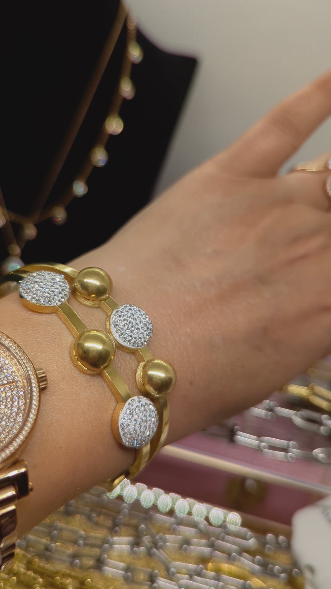 Eleganter Goldener Armreif aus Edelstahl mit funkelnden Kristallen. Der zeitlose Design und der komfortable Verschluss machen dieses Armband zu einem absoluten Must-have für jede Schmucksammlung. Handgefertigt mit Liebe zum Detail.
