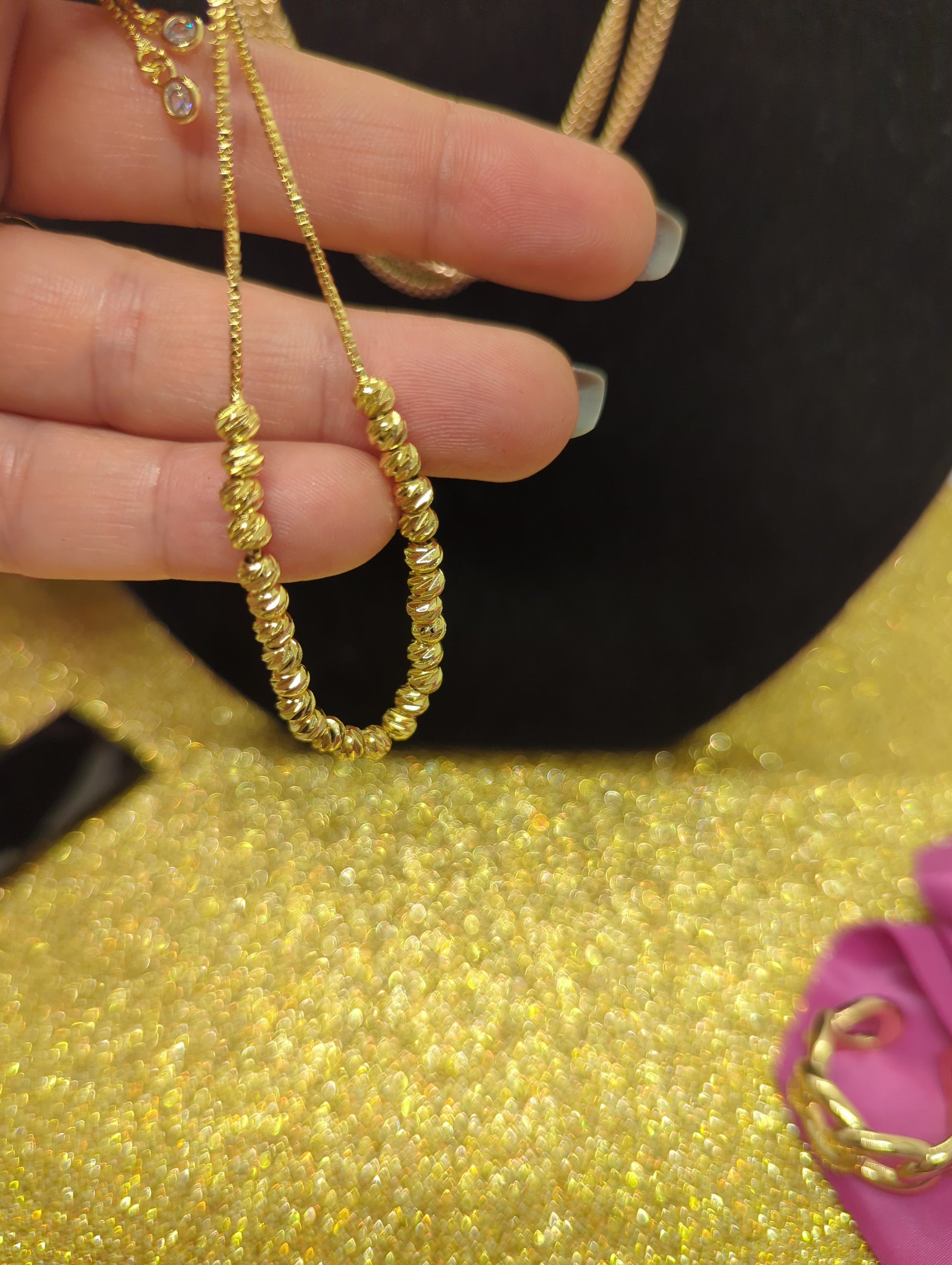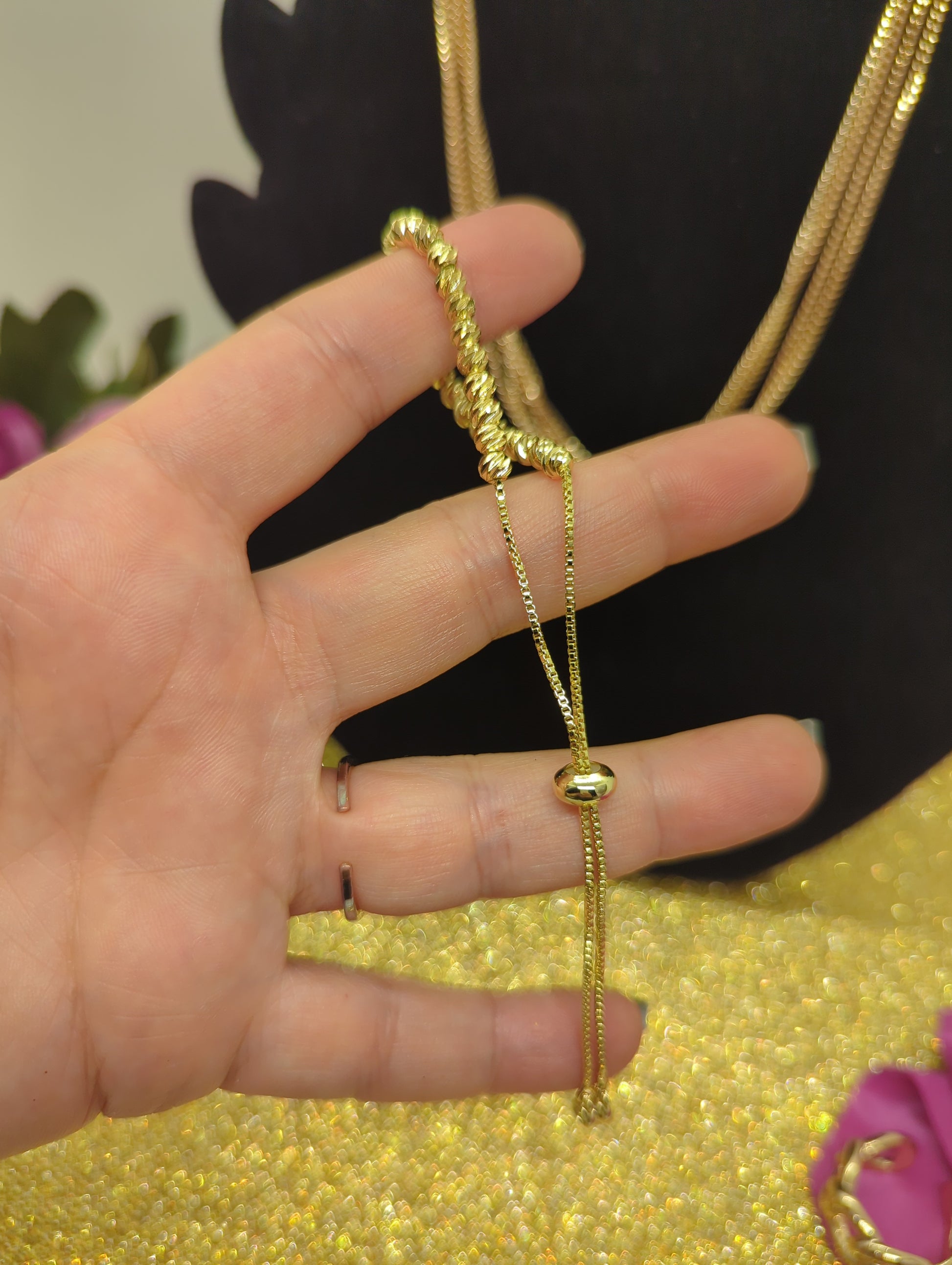 Ein besonderer Blickfang ist der praktische und zugleich dekorative Schiebeknoten-Verschluss, der eine individuelle Anpassung der Länge ermöglicht und für sicheren Halt sorgt. Die feine Verarbeitung und das hochwertige Material machen dieses Armband zu einem idealen Accessoire für jeden Anlass, sei es im Alltag oder zu besonderen Anlässen.