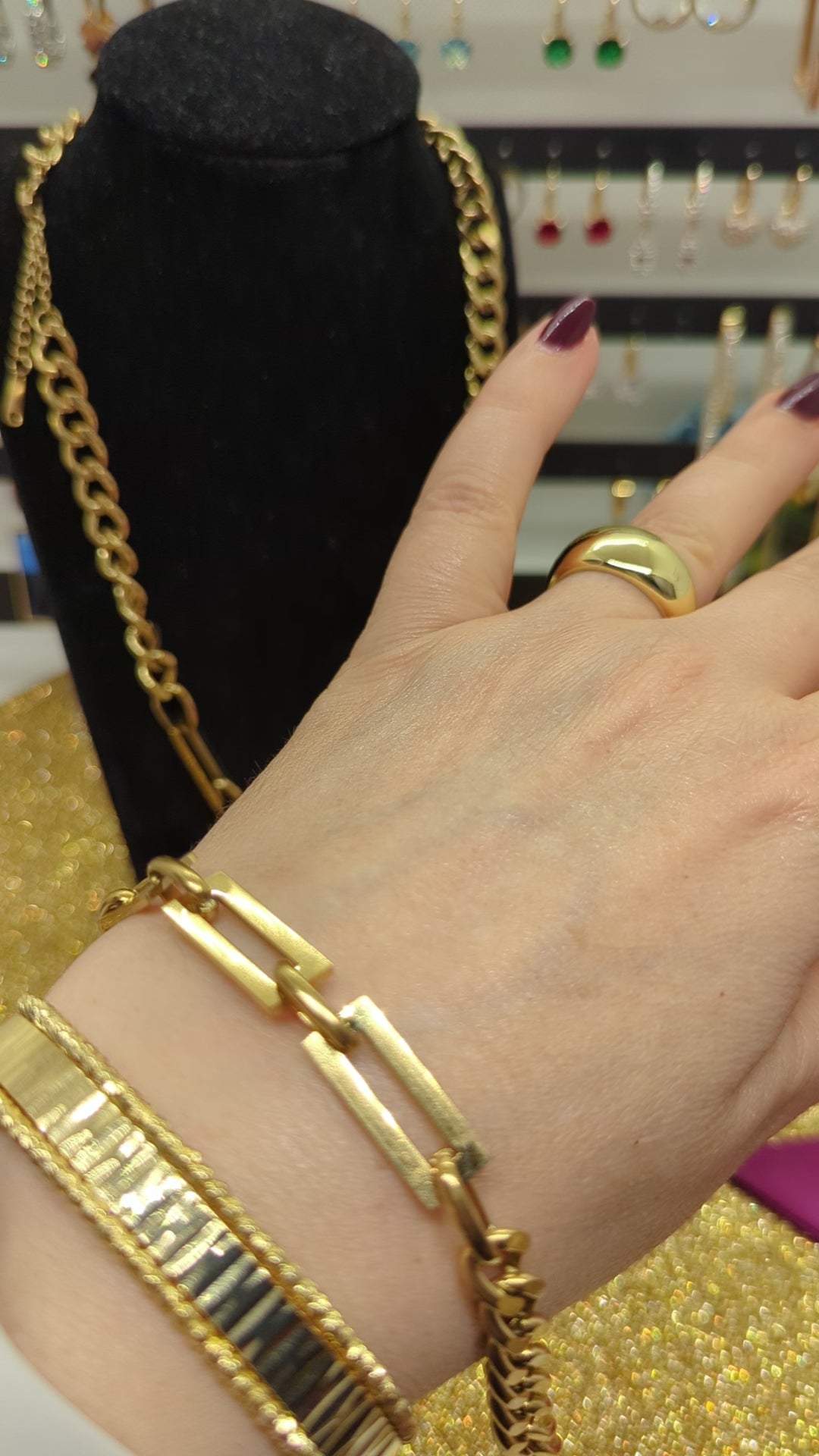 Dieses elegante Armband aus Edelstahl besticht durch seine gehämmert wirkende Oberfläche. Es ist ein vielseitiges Schmuckstück, das zu jedem Outfit passt und jedem Look eine elegante Note verleiht.